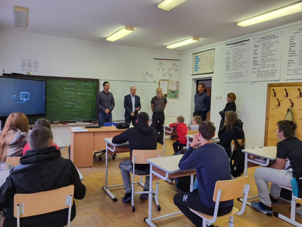 27/5/2025 v 11 hod., česká škola v banátské Svaté Heleně, beseda Zdeňka Lyčky s místními dětmi a učiteli o jeho splutí Dunaje na kajaku.