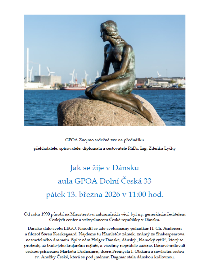 13/3/2026 v 11 hod., aula GPOA Dolní Česká 33, Znojmo. Přednáška Zdeňka Lyčky.